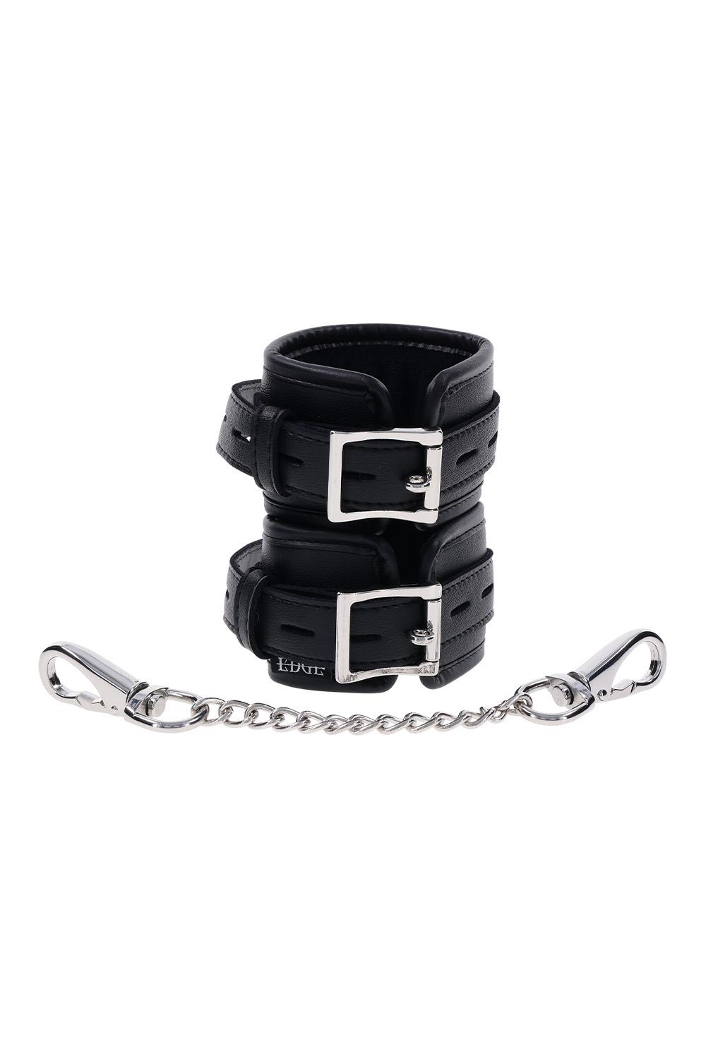 Step confidently into your dominant role with the Edge® Handcuffs—where form meets function for commanding restraint. Crafted from durable black vegan leather and reinforced with sleek silver metal hardware, these cuffs are the ultimate in comfort and control.
